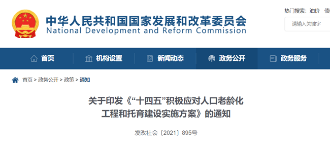 近日,國家發(fā)改委、民政部、國家衛(wèi)健委三部門聯(lián)合印發(fā)《“十四五”積極應(yīng)對人口老齡化工程和托育建設(shè)實施方案》?!斗桨浮诽岢?,到2025年,在中央和地方共同努力下,堅持補短板、強弱項、提質(zhì)量,進一步改善養(yǎng)老、托育服務(wù)基礎(chǔ)設(shè)施條件,推動設(shè)施規(guī)范化、標準化建設(shè),增強兜底保障能力,增加普惠性服務(wù)供給,提升養(yǎng)老、托育服務(wù)水平,逐步構(gòu)建居家社區(qū)機構(gòu)相協(xié)調(diào)、醫(yī)養(yǎng)康養(yǎng)相結(jié)合的養(yǎng)老服務(wù)體系,不斷發(fā)展和完善普惠托育服務(wù)體系。